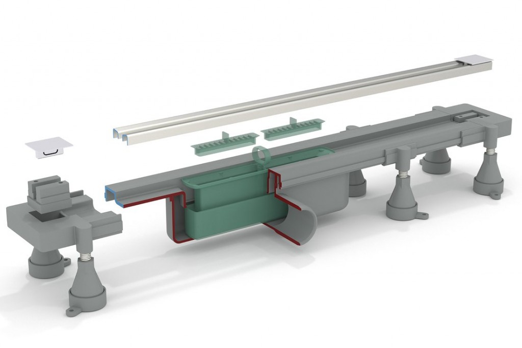 • Odpadní potrubí musí mít dostatečný spád, alespoň 2 cm/bm. Sprchové žlábky jsou k dostání v různých délkách. Pečlivě zkontrolujte, zda jste k vymezenému prostoru zvolili správnou délku kanálku.