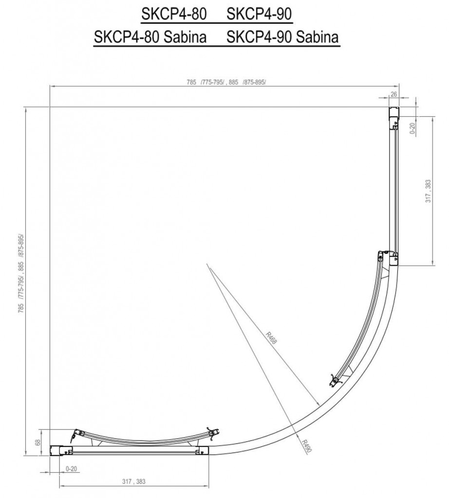 Čtvrtkruhový sprchový kout SKCP4-90, s posuvnými dveřmi