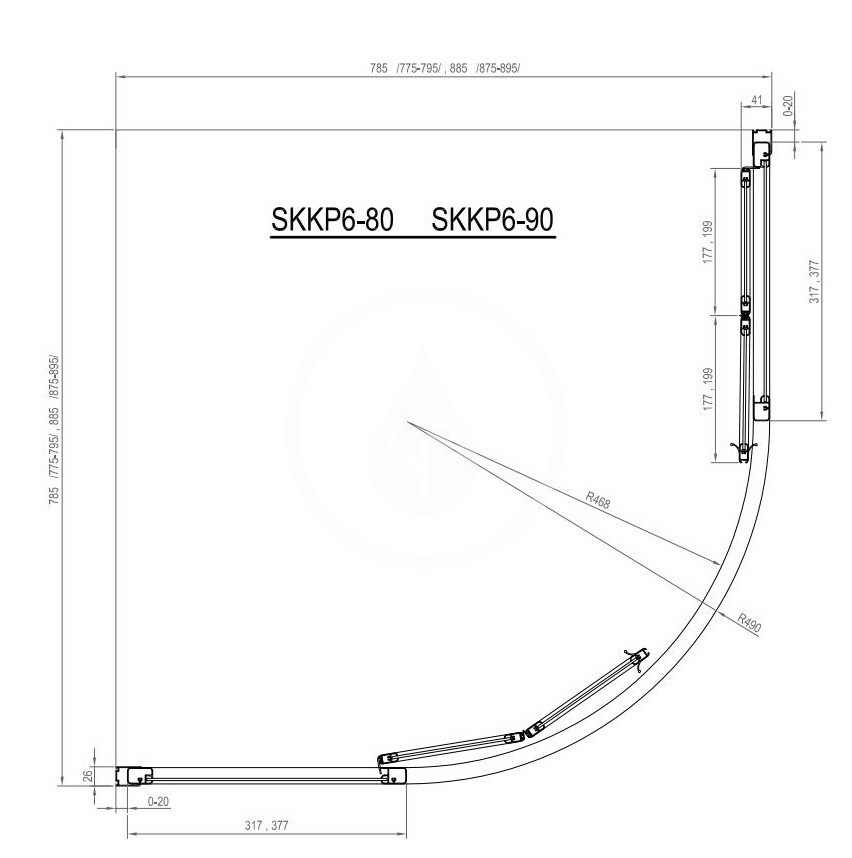 Čtvrtkruhový sprchový kout SKKP6-90 s posuvnými dveřmi
