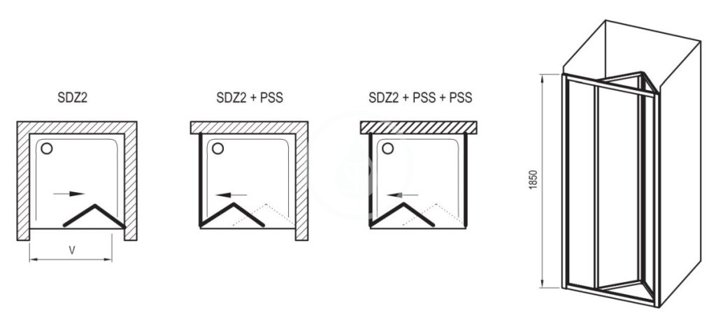 - instalace do vyzděné niky nebo v kombinaci se sprchovu stěnou PSS