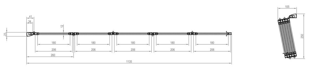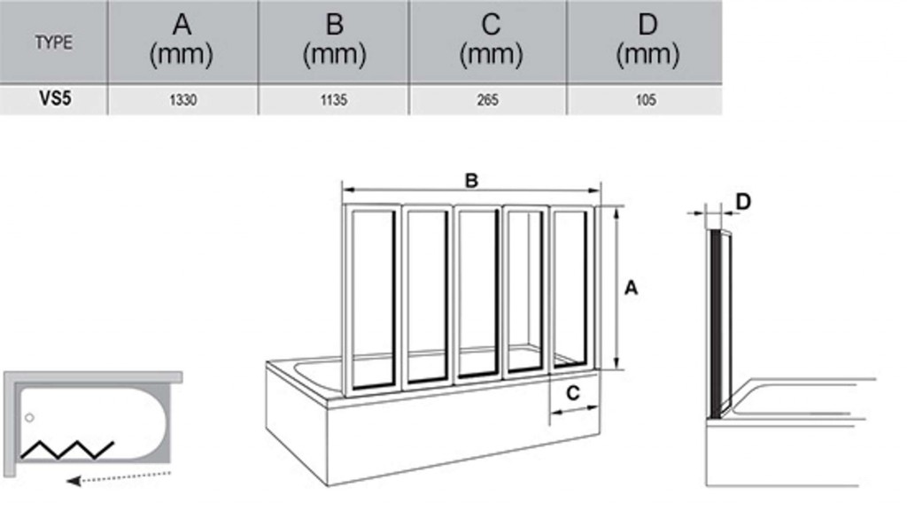 Vanová zástěna VS5 má ve složeném stavu šířku 223 mm. Otočením vanové zástěny VS5 o 180⁰ získáme variantu vstupu zprava či zleva.