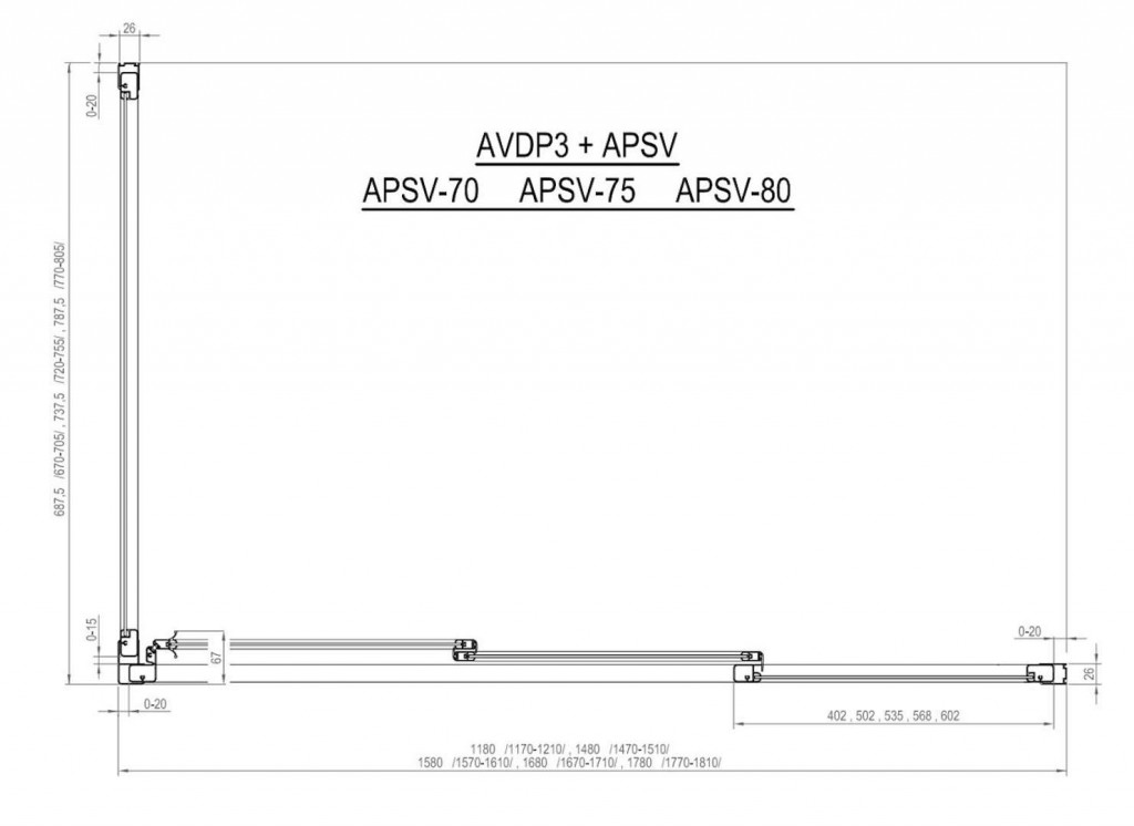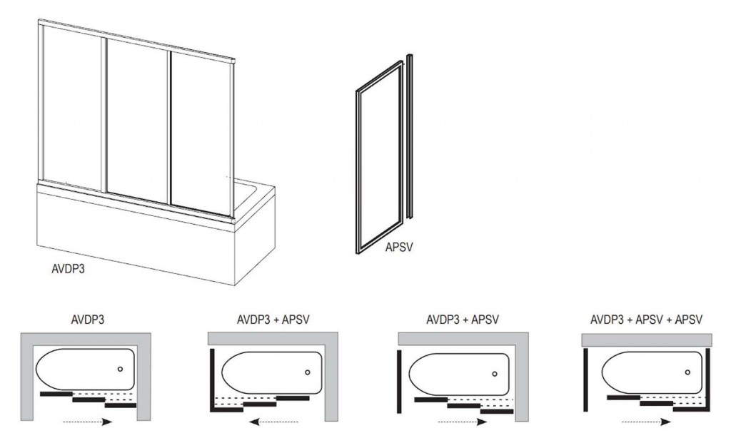 - lze instalovat samostatně, nebo v kombinaci s pevnou vanovou stěnou APSV (rohový spojovací profil je součástí balení pevné stěny)