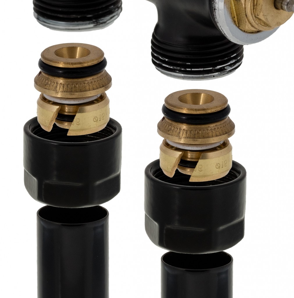 Svěrné spojky jsou určeny pro ventily TERM-SET, SINGLE-SET (Z7 a Z4) a pro Pex-Al-Pex potrubí 16×2 mm. Pro připojení každé trubky k ventilu potřebujete vždy jednu svěrnou spojku. Pro celý ventily potřebujete 2ks.