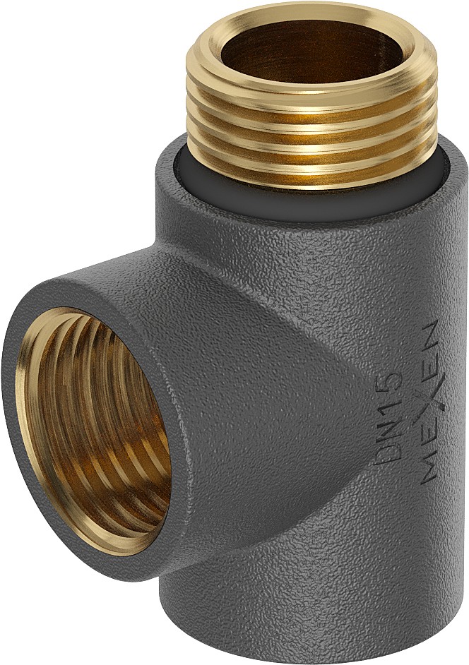 Mosazný adaptér ve tvaru trojúhelníku, je běžně používaný pro elektrické ohřívače vody. Má dva vnitřní závity a jeden závit vnější. Označení na šroubení udává velikost DN15, což se vztahuje na průměr 15 mm pro vnitřní závit. Materiál kombinuje mosaz s barevným povlakem, což naznačuje, že je navržen pro odolnost a kompatibilitu s topnými systémy. T-kus je dostupný v barevných variantách: chrom, bílá, zlato, antracit a černá.