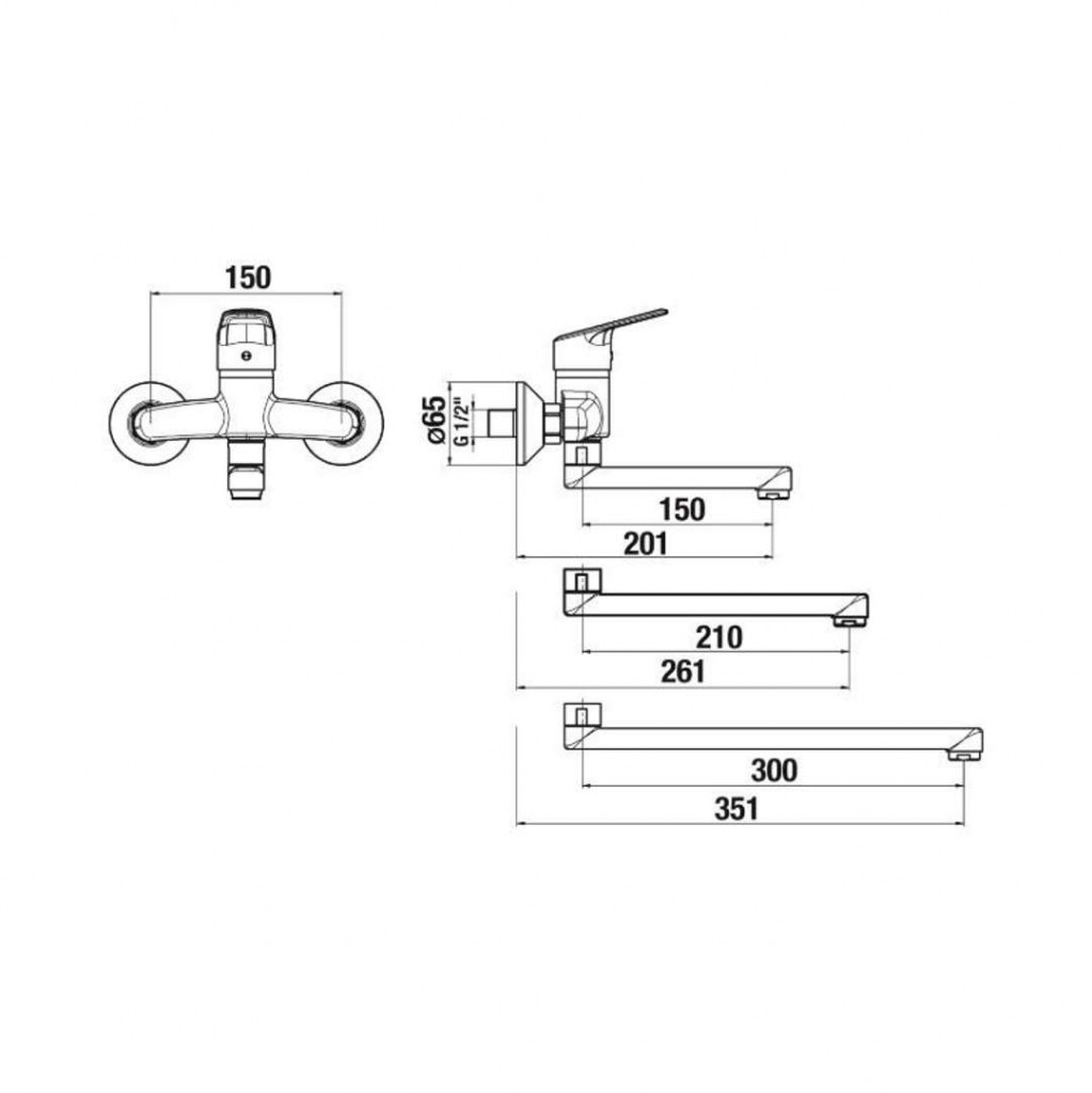 Nástěnná umyvadlová baterie, výtok 150 mm