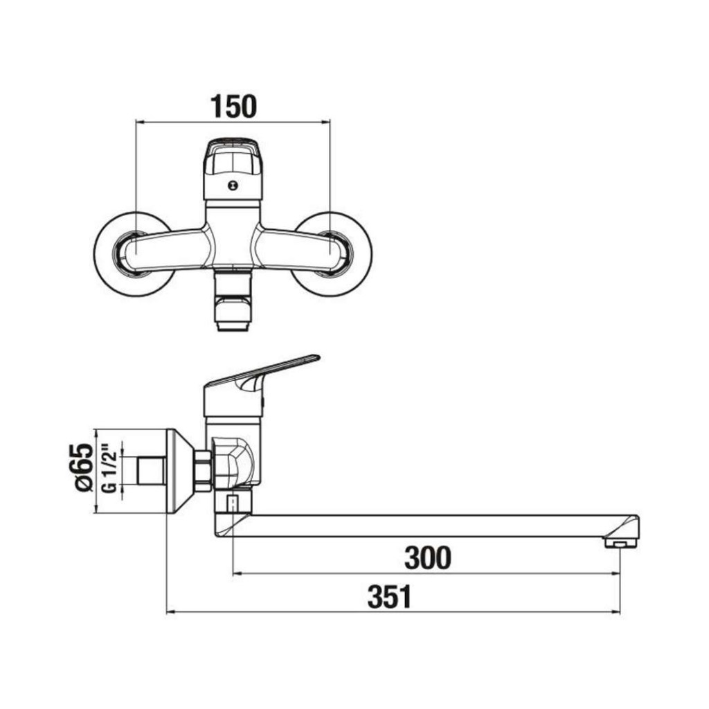 Nástěnná umyvadlová baterie, výtok 300 mm