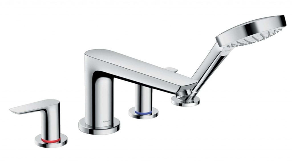 - 4-otvorová armatura na okraj vany, ruční sprcha, sprchová hadice