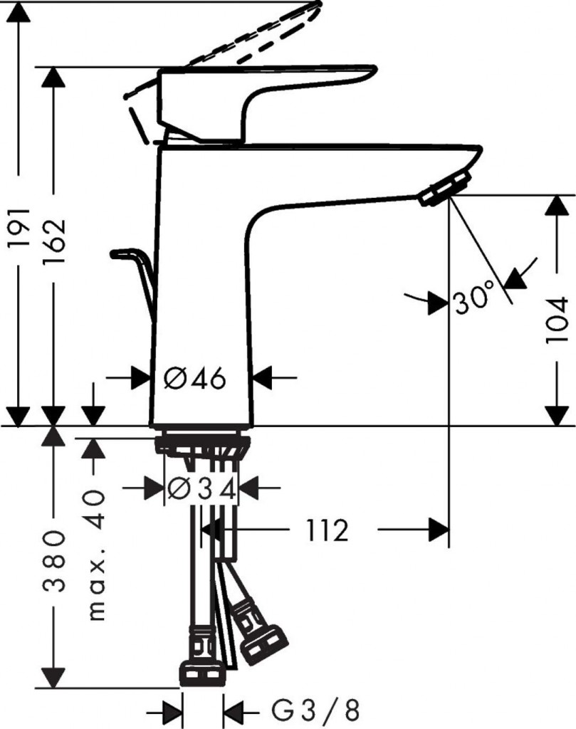 Páková umyvadlová baterie s odtokovou soupravou s táhlem