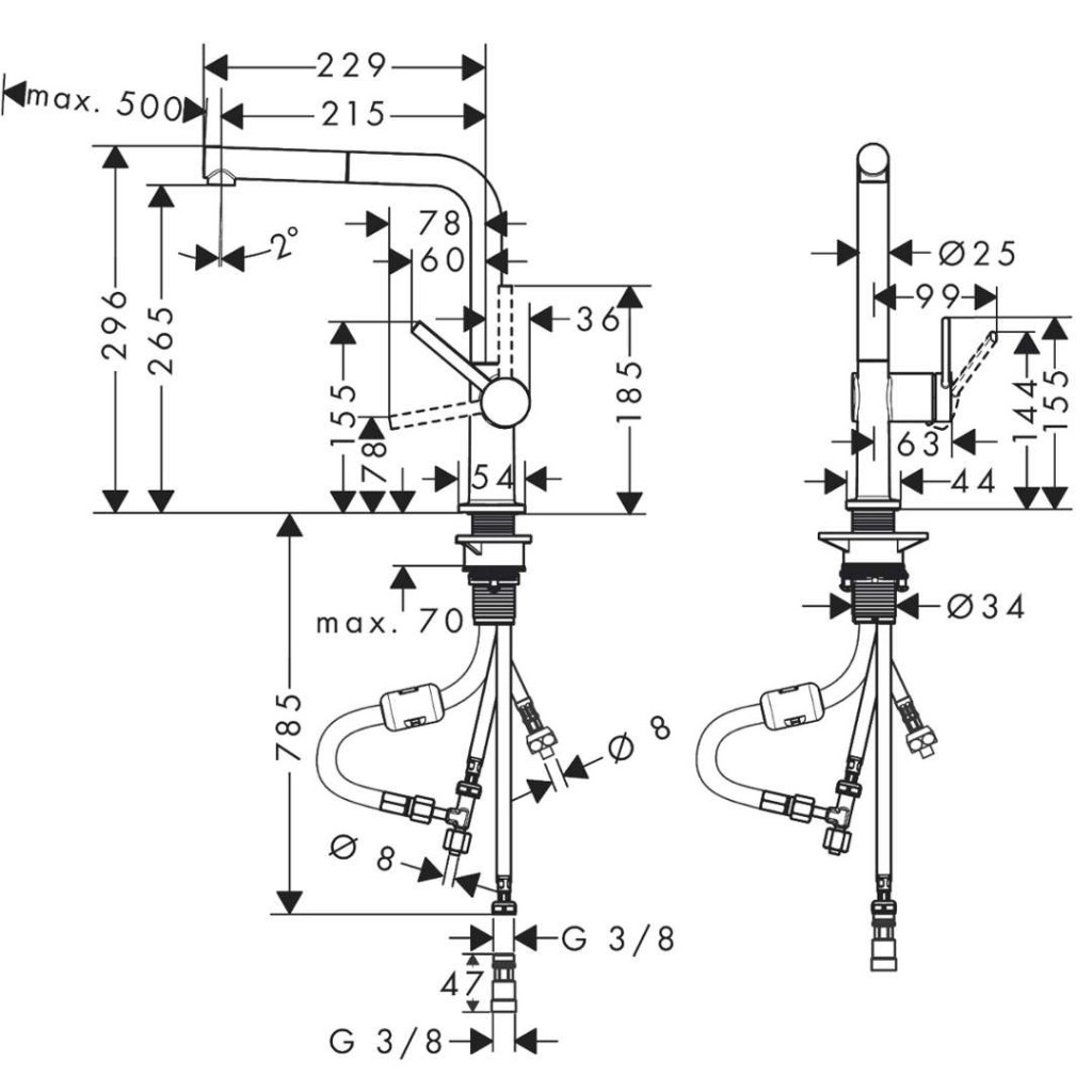 - otočný výtok - nastavitelný rozsah otáčení ve 3 krocích: 60°, 110°, nebo 150°