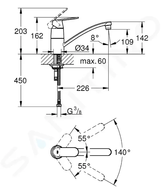 - zpúsob montáže: přívodní hadice G ⅜