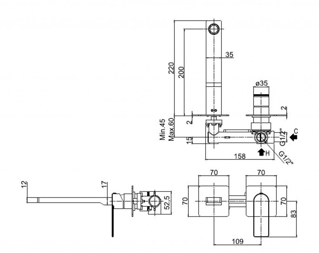 Umyvadlová 2 prvková nástěnná páková baterie pod omítku s tělesem