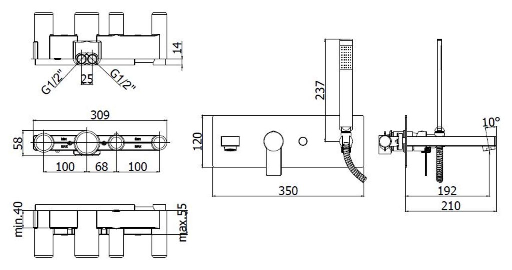 Podomítková vanová baterie s montážním tělesem, včetně sprchového setu