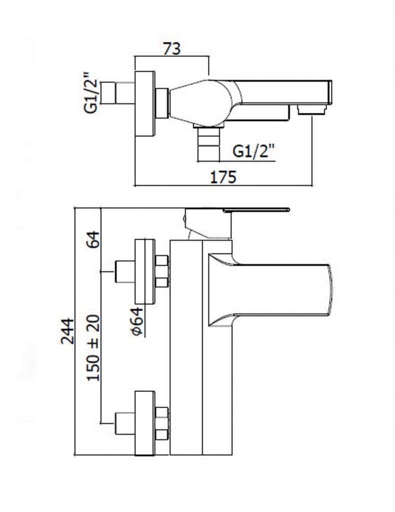 Vanová nástěnná baterie včetně ruční sprchy, držáku a flexibilní hadice