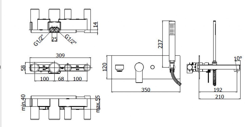 Vanová páková baterie pod omítku s tělesem včetně sprchového setu