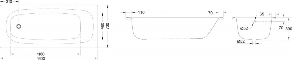 Nohy k vaně a odtokovou soupravu je nutné objednat zvlášť.