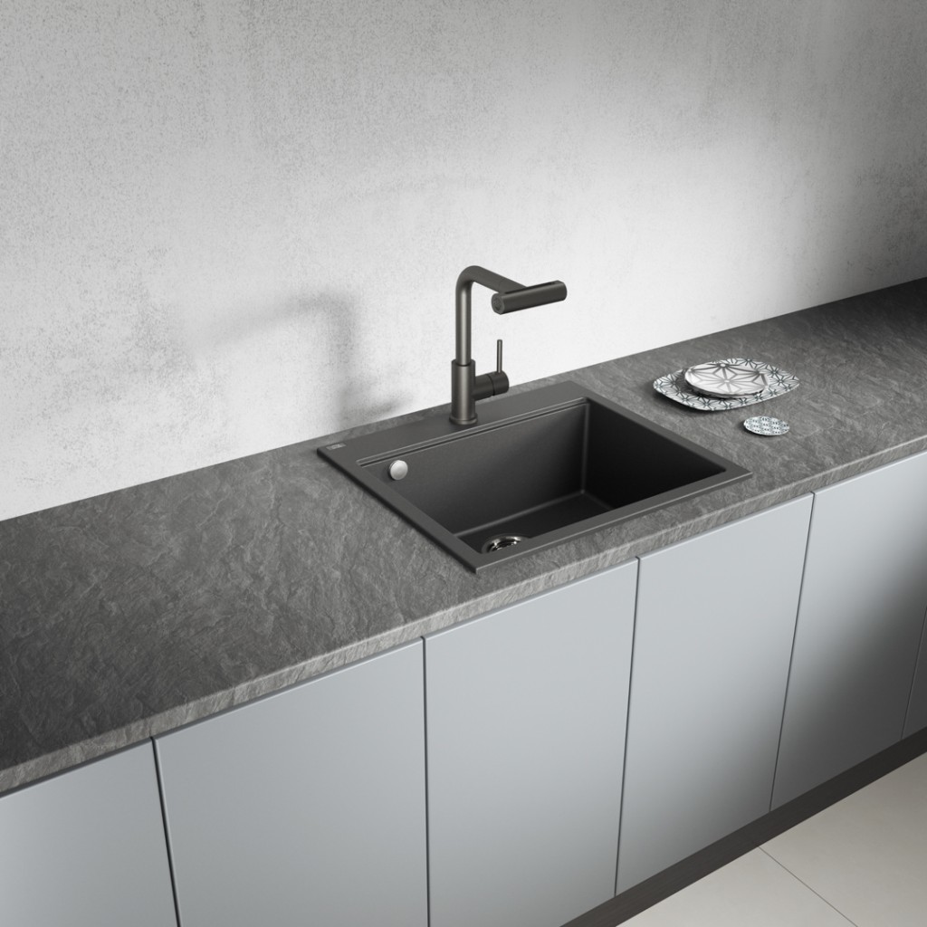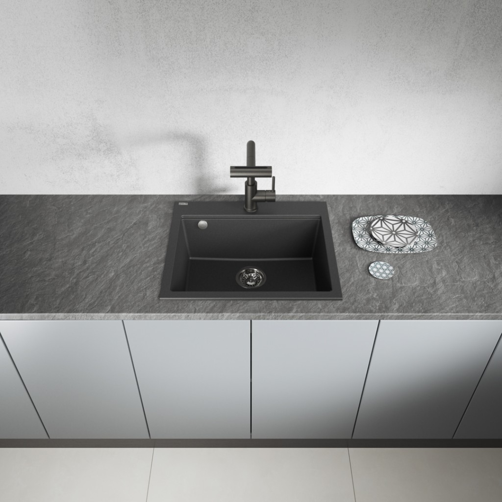 Granitové dřezy Tau jsou navrženy s ohledem na profesionálně navržené kuchyně, a to jak z hlediska formy, tak funkčnosti. Jejich výrazný, hranatý tvar z nich udělá výrazný designový prvek, zatímco jejich velkorysá velikost snadno splní nároky každodenního života. Hladký žulový povrch činí dřez odolným vůči zabarvení, poškrábání a vysokým teplotám (až do 250 °C). Dřez o hloubce 20 cm umožňuje snadné mytí velkých kuchyňských předmětů, jako jsou pekáče nebo plechy na pečení, bez stříkance. Dřezy Tau jsou modely bez předřezaného otvoru pro baterii, ale lze je ručně vyjmout v jednom z vyfrézovaných míst. Součástí je prostorově úsporný sifon, ruční zátka nebo funkce click-clack.