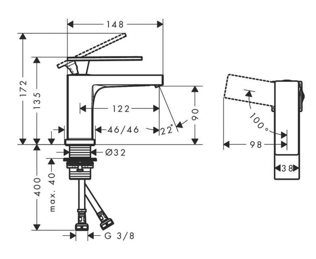 Páková umyvadlová baterie bez výpusti