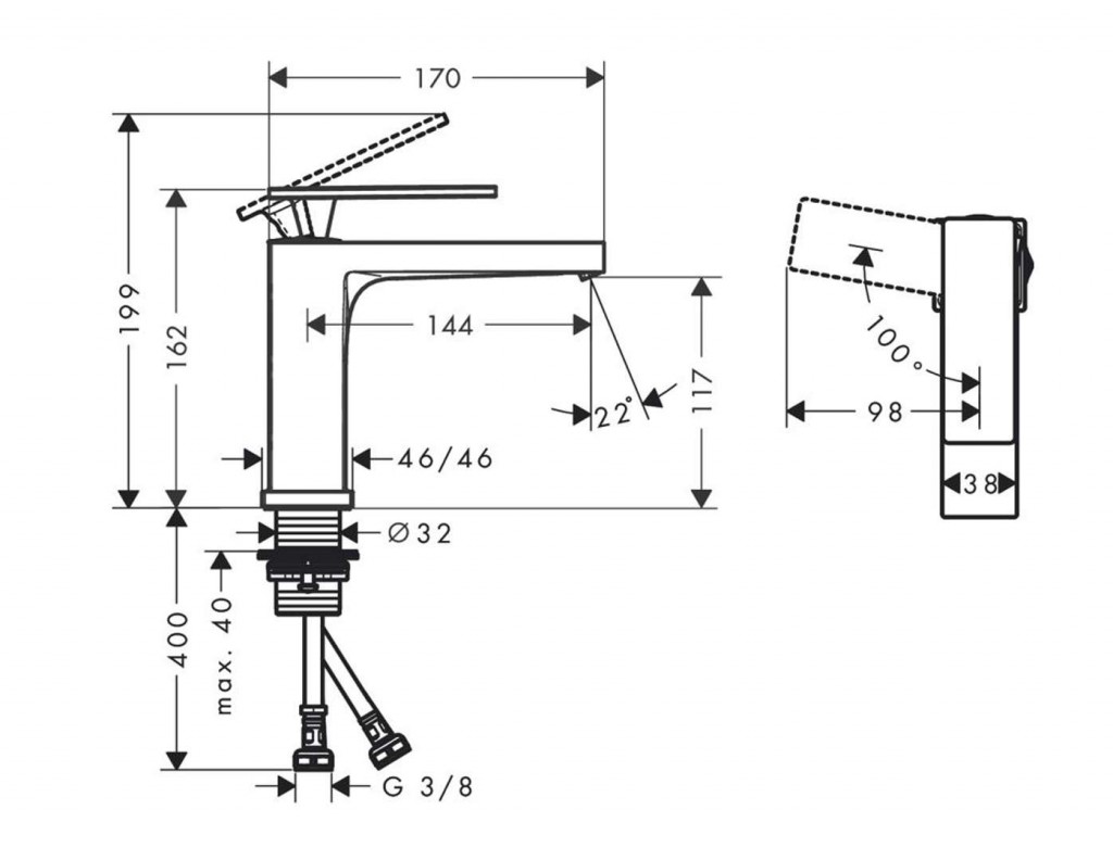 Páková umyvadlová baterie bez výpusti