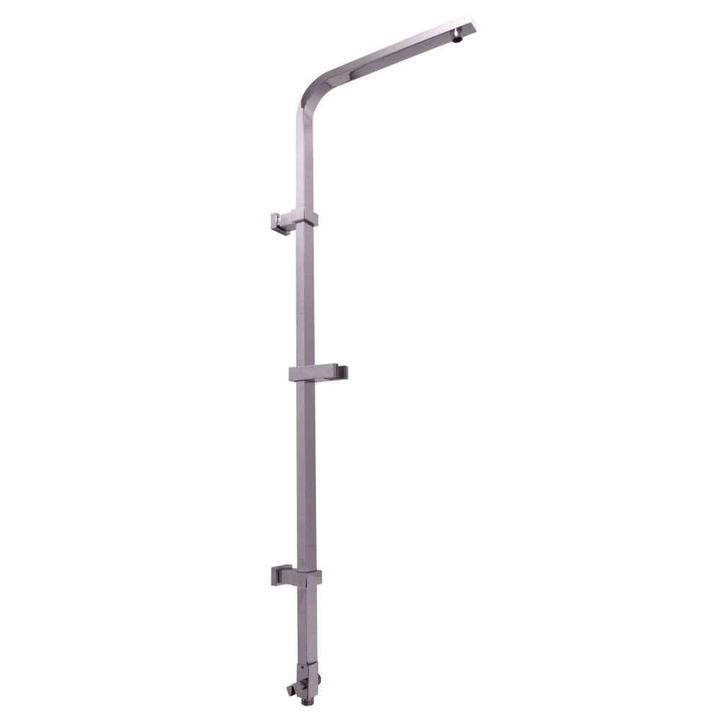 Sprchová tyč hranatá s přepínačem k baterii s hlavovou a ruční sprchou.