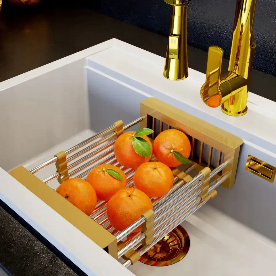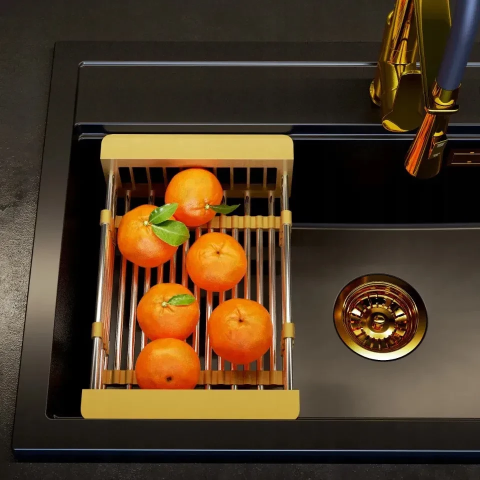 Teleskopický košík je dostupný ve třech stylových barevných variantách – šedá, černá a zlatá. Díky tomu si snadno vyberete provedení, které nejlépe ladí s vaší kuchyní, ať už preferujete moderní, industriální nebo elegantní vzhled. Výběr barev umožňuje sladění s dřezem, baterií či ostatními doplňky.