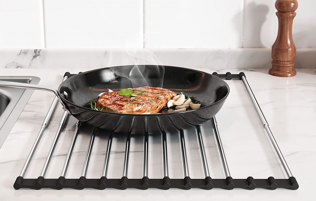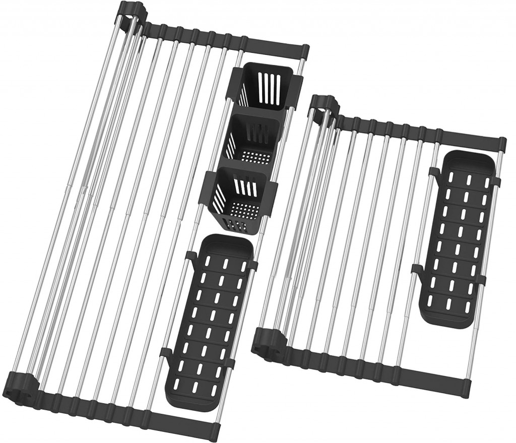 Univerzální sušička, protože je určena pro použití na dřezu. Díky tomu najde uplatnění prakticky v každé kuchyni a v případě potřeby i v koupelně. Sušička má teleskopické tyče vyrobené z vysoce kvalitní oceli. Okraje ze silikonu zajišťují možnost srolování a v případě potřeby seříznutí odkapávače na požadovanou šířku. Podložka je maximálně funkční. Ideální pro mytí ovoce a zeleniny nebo sušení nádobí. Ve složeném stavu zabírá velmi málo místa. Vejde se do každé kuchyňské zásuvky. Vysoká kvalita použitých materiálů a zpracování zajistí vysoký standard použití. Díky jednoduchému a modernímu tvaru se sušička skvěle hodí do každé kuchyně. Stylové provedení se hodí do klasických i moderních interiérů. Sušička se snadno čistí. Nemá žádná zbytečná zákoutí, stačí ji opláchnout a otřít nebo nechat uschnout. Včetně 2 košíčků.