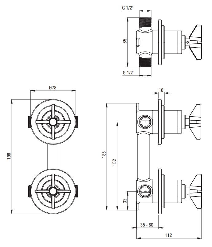 Podomítková baterie kolekce TEMISTO zaujme stylizovanými kohoutky a decentní zapuštěnou instalací. Jeden z kohoutků je spouštěč vody, otáčením ve směru hodinových ručiček se voda postupně ohřívá, dokud není dosaženo požadované teploty. Druhým kohoutkem je keramický přepínač funkcí, který umožňuje přepínat zdroj vody mezi ruční a hlavovou sprchou. Baterie je vyrobena z vysoce kvalitní mosazi, která zajišťuje trvanlivost a odolnost výrobku.