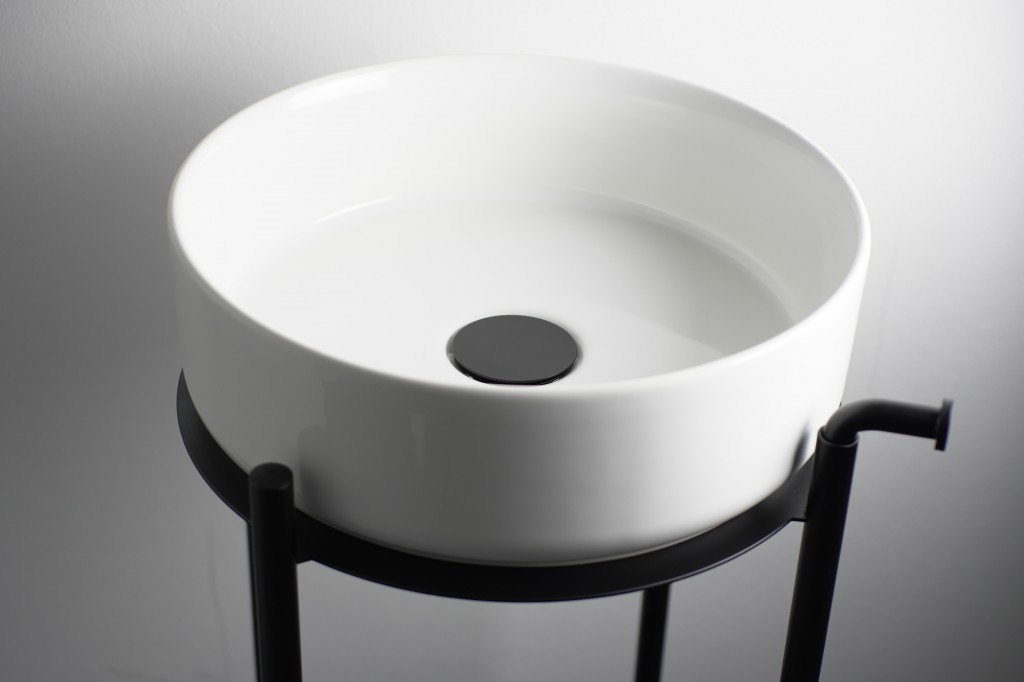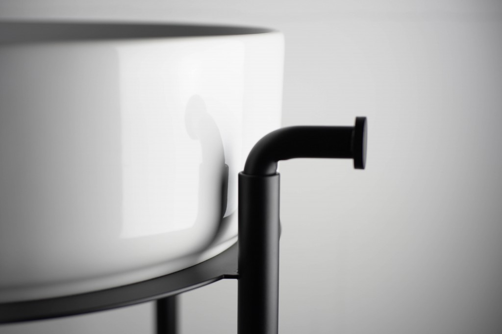 Stojatá koupelnová konzola je vyrobena z práškově lakované oceli. V souladu s myšlenkou zero waste je odolný a pevný, a proto vydrží roky. Můžete jej nastavit do libovolné polohy a vybavit jej umyvadlem nebo deskou z kamene, konglomerátu nebo dřeva, které vám vyhovuje. Černá barva konstrukce je velmi minimalistická a zároveň elegantní, a proto se bude skvěle hodit do koupelny v jakémkoli stylu. Získáte velkou volnost při zařizování pokoje a zároveň velké pohodlí. Konzole má praktickou polici a držák na ručník. Navíc se velmi snadno udržuje v čistotě, protože zde nejsou žádná těžko dostupná zákoutí.