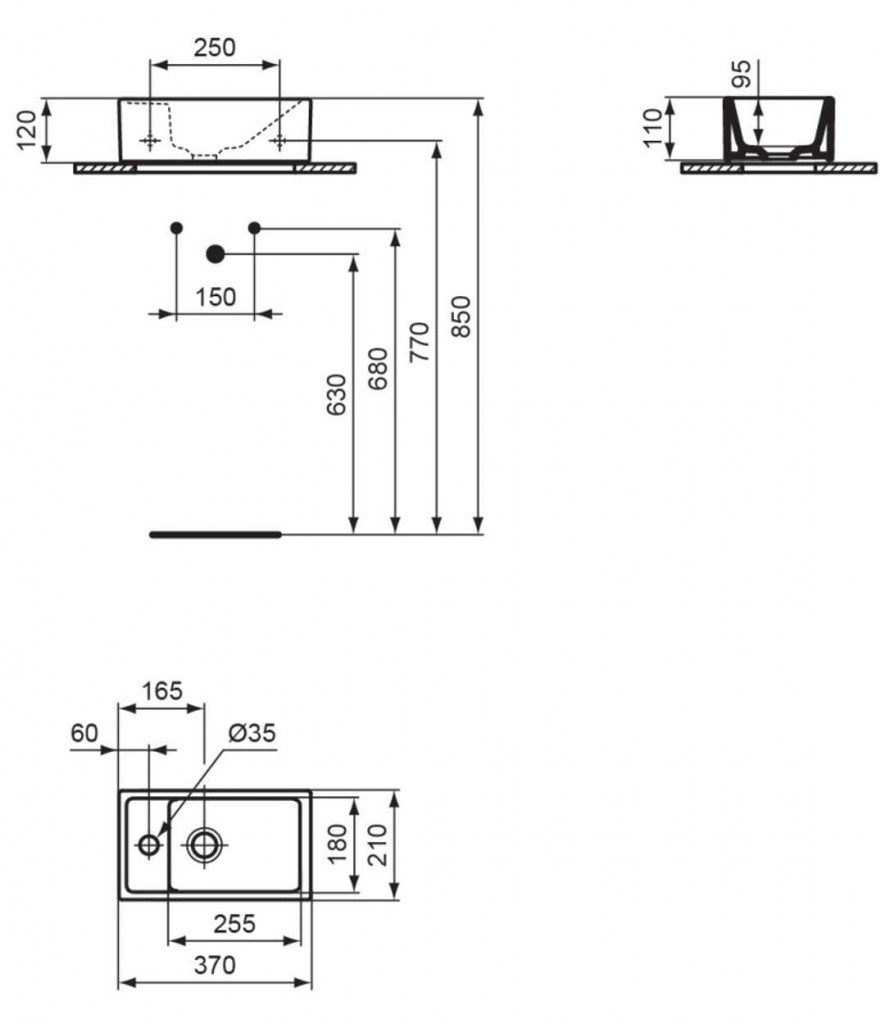 Umývátko s otvorem pro baterii vlevo