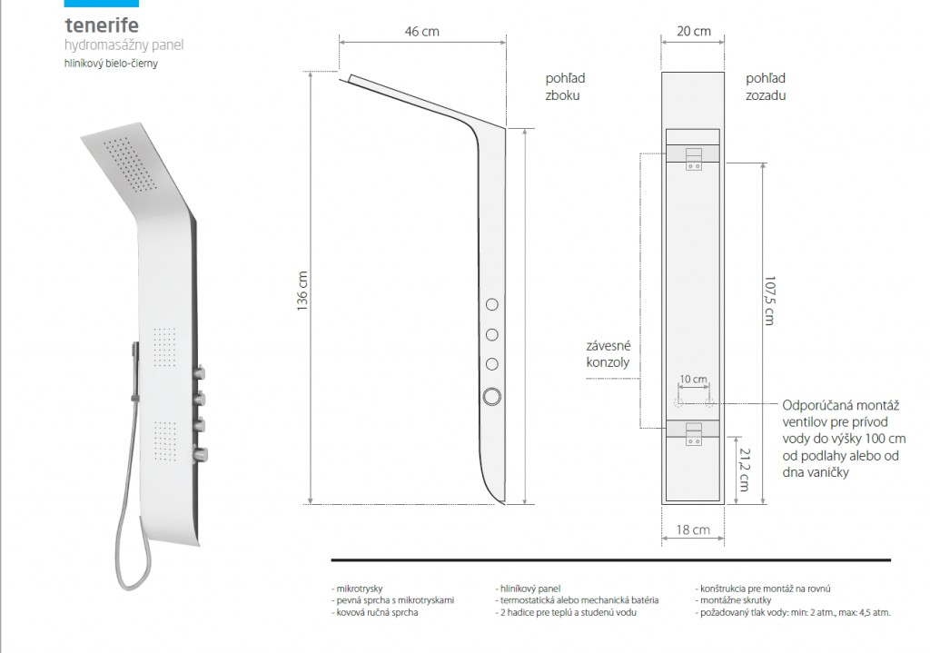 Příslušenství sprchového panelu