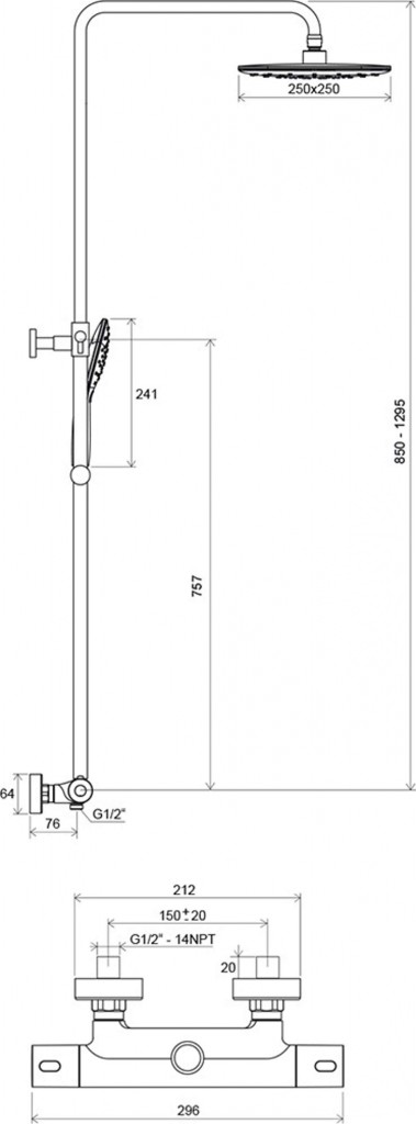 - obsahuje: termostat, hlavovou sprchu 250 mm a ruční sprchu Air, 3 proudy