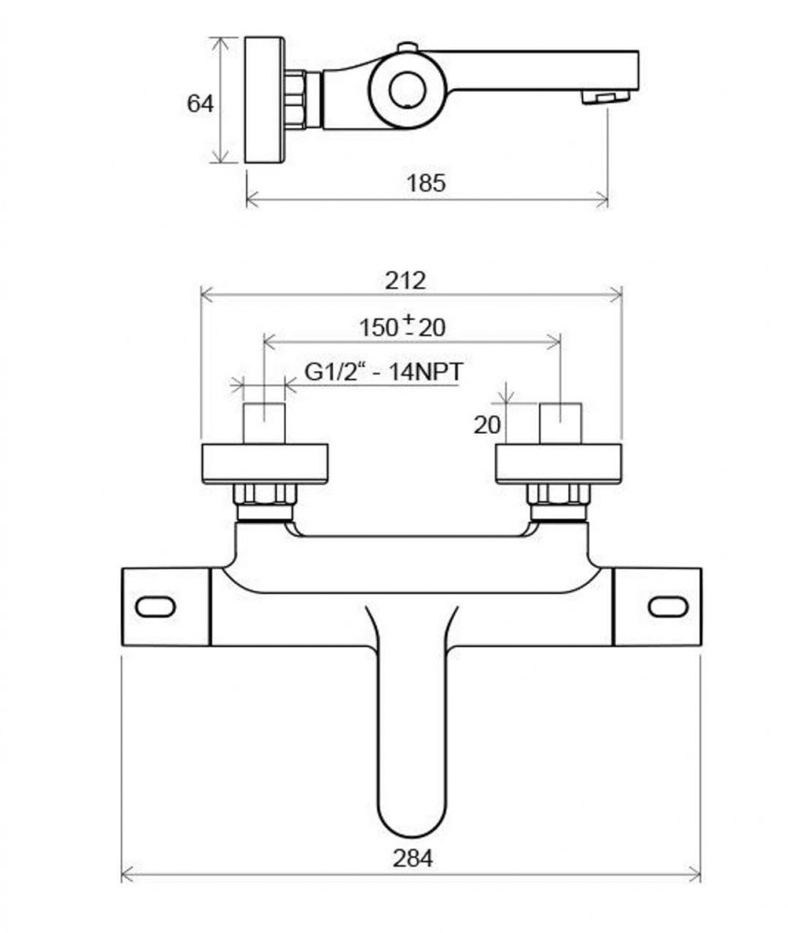 Termostatická vanová baterie Termo 300, TE 023.00/150