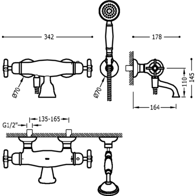Termostatická baterie pro vanu-sprchu: