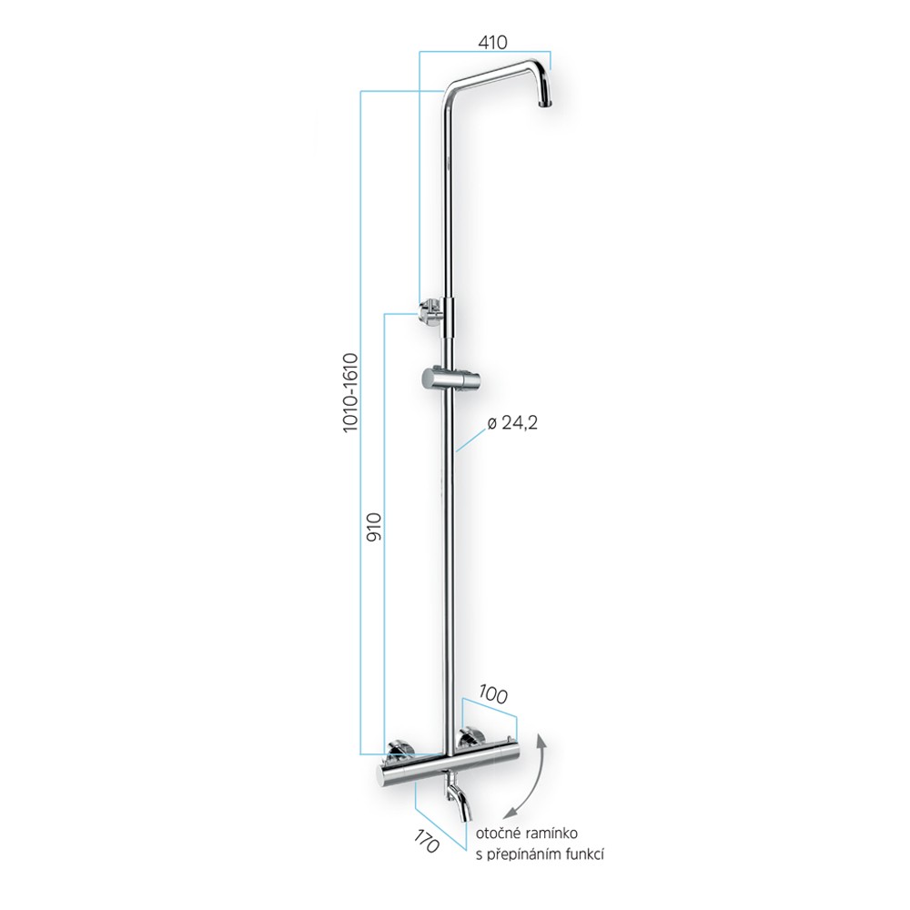 - Anti-twist: systém proti překroucení hadice - pro správnou funkci připojte delší kónusovou koncovku na ruční sprchu.