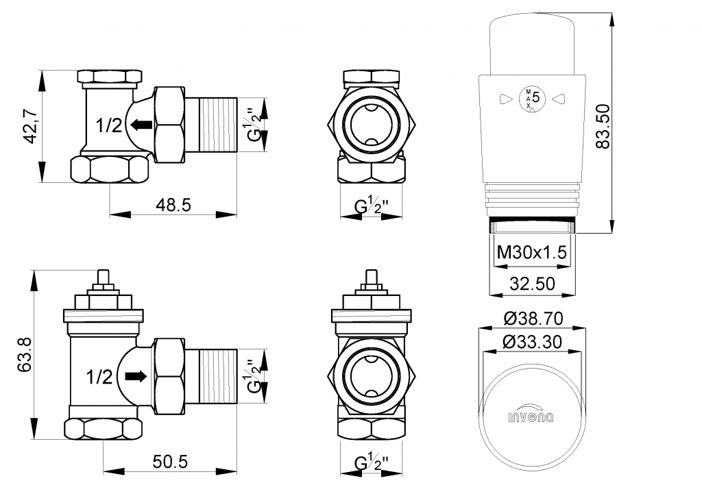 INVENA - Termostatická sada ventilů, rohová, černá (CD-81-K15-S)