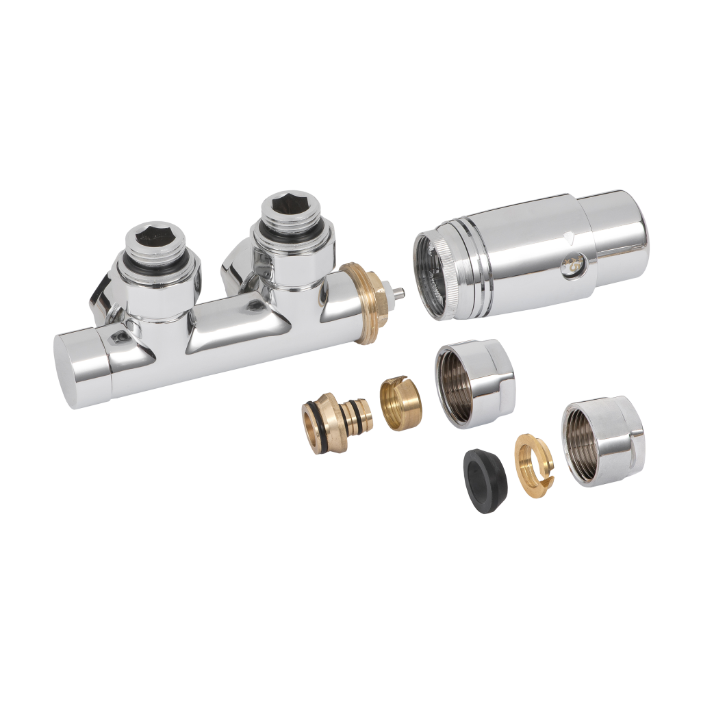 Termostatická sada ventilů typu DUOPLEX pro středové připojení je ideální pro instalaci nových radiátorů nebo pro modernizaci stávajícího vytápění. Je vhodná pro použití v bytových domech, rodinných domech, kancelářích a dalších budovách.