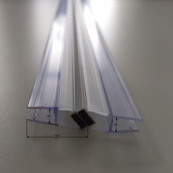 Vertikální magnetická těsnění pasují do čtvercových nebo půlkruhových sprchových koutů. Vertikální instalace je jednoduchá a díky možnosti řezání na správnou velikost je produkt velmi univerzální. Kvalitní materiál, ze kterého jsou těsnění vyrobena, nesaje vodu a zabraňuje usazování vodního kamene. Jsou určeny pro sklo o síle 5 mm.