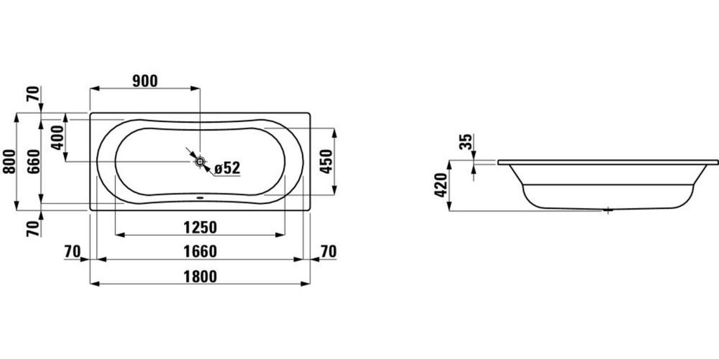 Zápustná oválná vana Thallium s protihlukovými podložkami