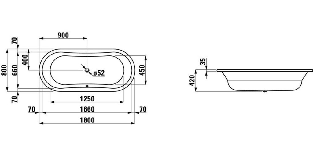 Zápustná oválná vana Thallium s protihlukovými podložkami