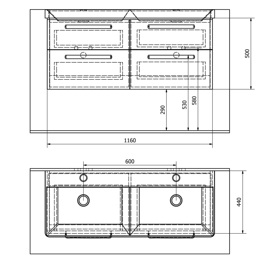 - Standardně dodáváno s úchytkami CT320, rozteč uchycení 320 mm