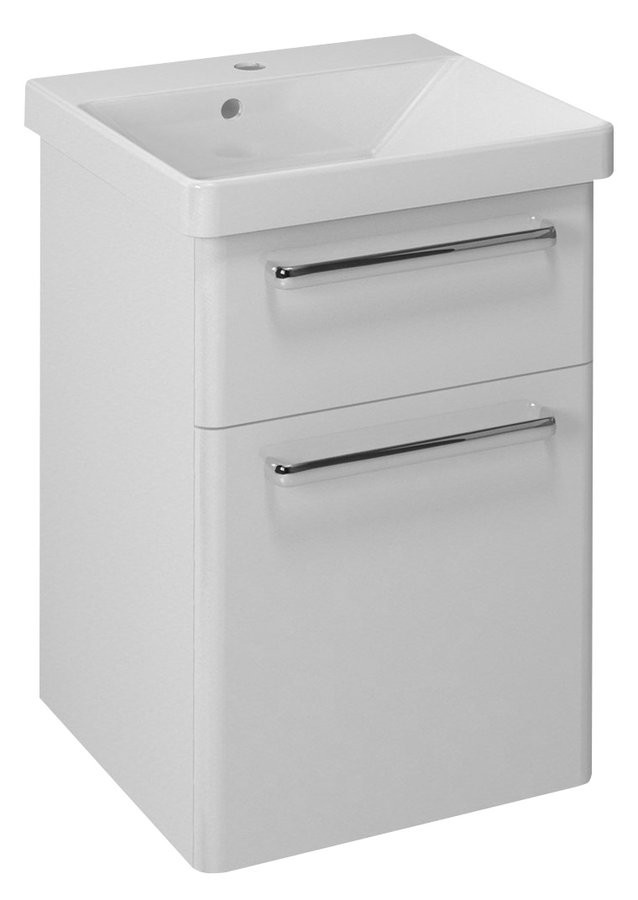 Moderní linie skříněk řady THEIA ladí s keramickými umyvadly THALIE vytváří spolu zajímavý celek. Skříňky a zásuvky jsou opatřeny elegantní úchytkou. Zásuvky jsou vybaveny značkovými pojezdy BLUM® s doživotní zárukou, dvířka jsou vybavena panty s tlumeným dovřením. Na výběr je zásuvkové nebo dvířkové provedení umyvadlových skříněk v lesklé bílé a ve vybraných dekorech lamina.
