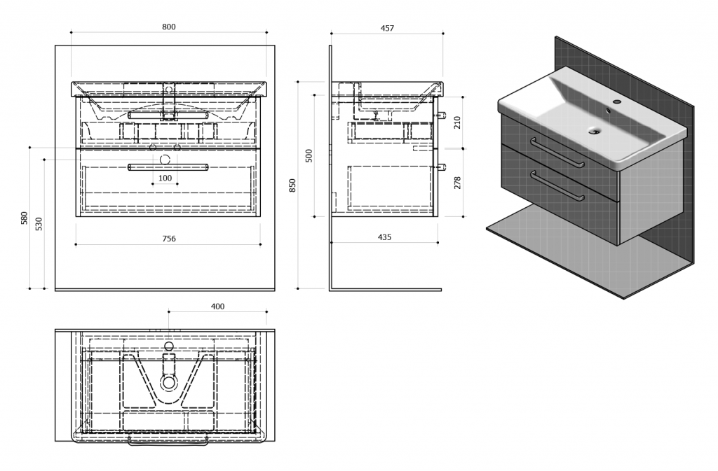 - Standardně dodáváno s úchytkami CT320, rozteč uchycení 320 mm