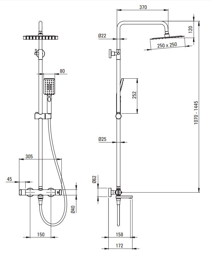 - možnost nastavení sprchové tyče od 1070 - 1445 mm