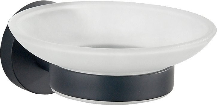 Moderní držák skleněného tácku TIBER na mýdlo k pevnému uchycení na stěnu snadno umístíte poblíž umyvadla. Prvek je kulatého tvaru a vyrobený je z kovu a skla. Série TIBER je dostupná v chromovém a černém provedení.