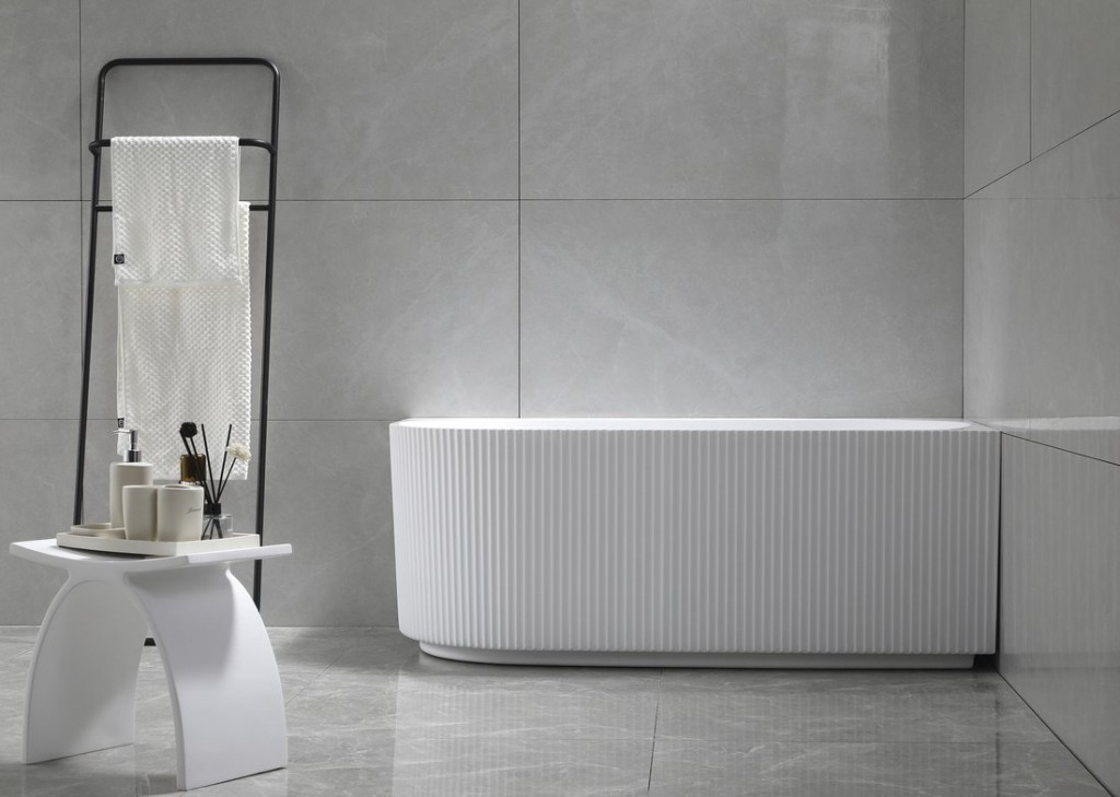 Samostatně stojící vana TIBERA se neobezdívá ani neobkládá. Svým designem je určena k instalaci do rohu, čímž se stává zajímavou variantou náhrady za klasickou rohovou vanu. Pohledová je i zadní strana, takže elegantně bude působit i v prostoru. Za pozornost stojí řešení přepadu ve tvaru obdélníkové štěrbiny s nerezovou krytkou.