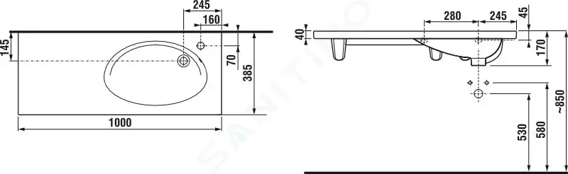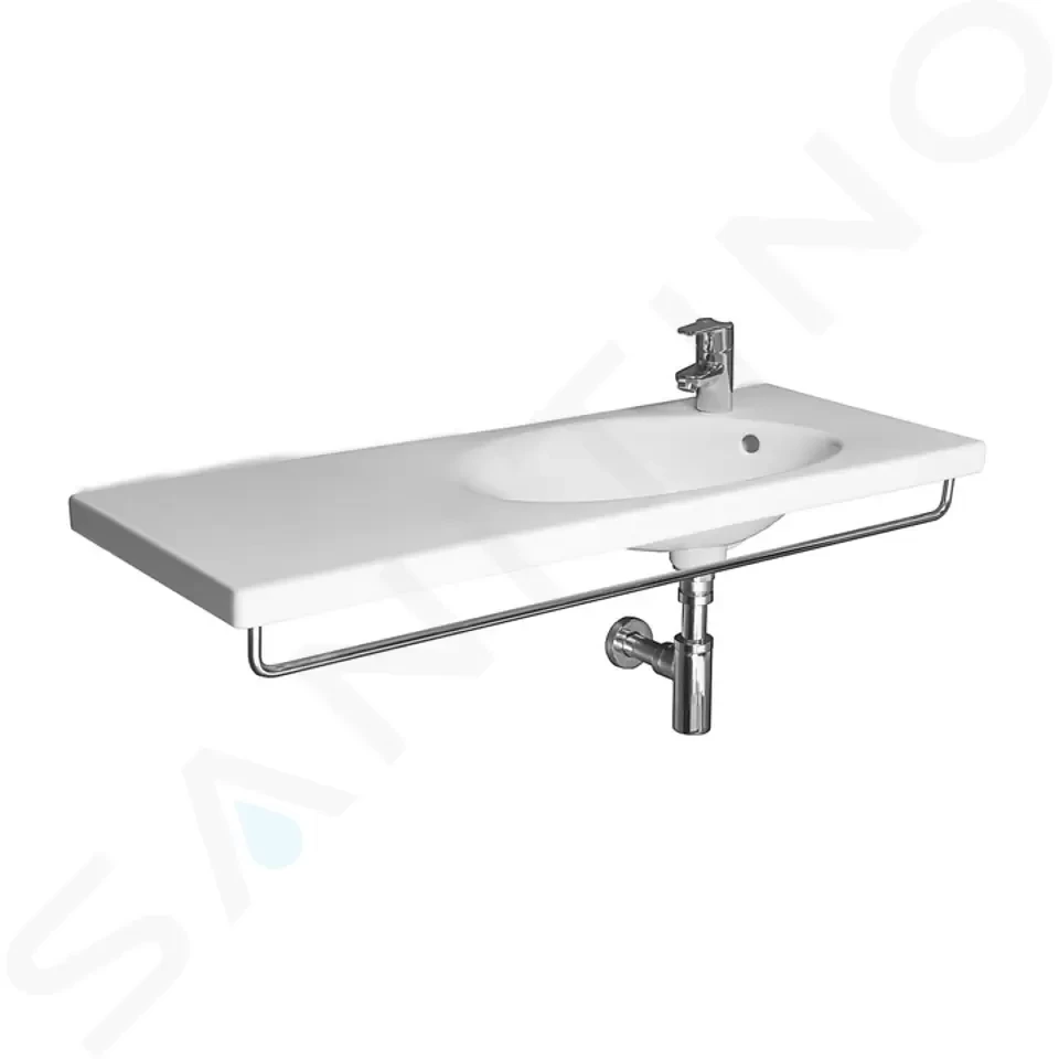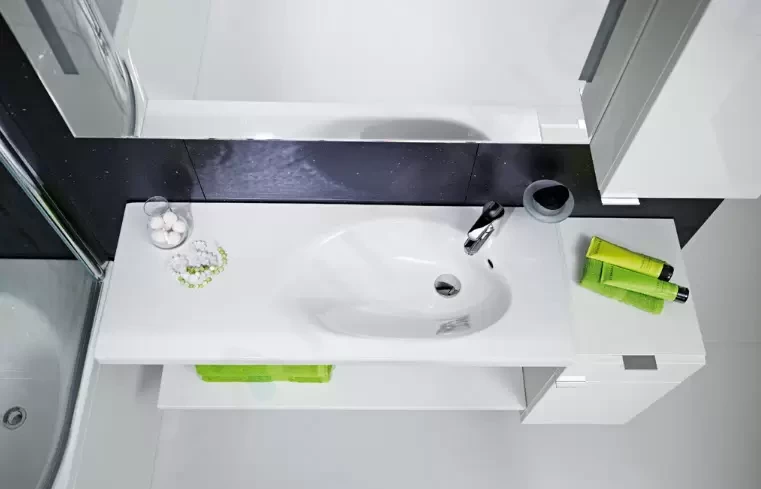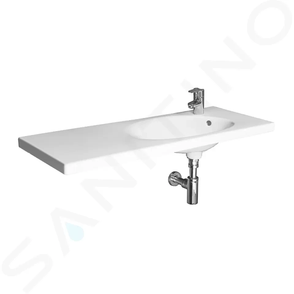 Moderní asymetrické umyvadlo 100 cm nabízíme s otvorem pro baterii vlevo či vpravo (případně bez otvoru) je hluboké 38,5 cm, takže i do nevelké koupelny přináší komfort většího privátního prostoru.