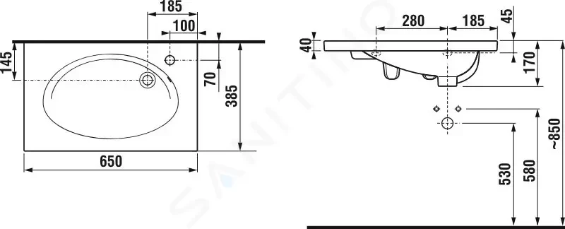 Umyvadlo nábytkové 65 cm s otvorem pro baterii vpravo