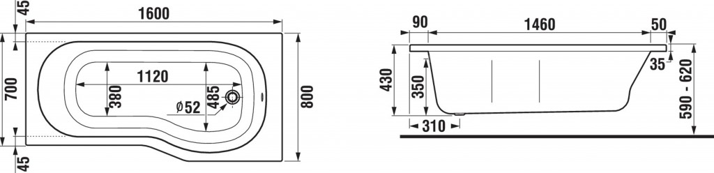 Vestavná verze, bez podpěr. Ani v malé koupelně se nemusíte spokojit jen se sprchovým koutem. Sestava Tigo přináší ergonomicky tvarovanou vanu vytvořenou pro malé prostory, kterou doplňuje speciální zástěna přesně kopírující její tvar. Vana a sprcha v jednom už není jen doménou velkých koupelen. V rozšířené části (80 cm) se pohodlně osprchujete, zatímco 70cm široká část vám poskytne dostatek prostoru pro koupel. Vana je vyrobena ze 100% akrylátu, který po dobu používání nemění svůj tvar, ani barvu. K této asymetrické zápustné verzi s instalací vany do pravého rohu je potřeba objednat podpěry (2.9629.6).