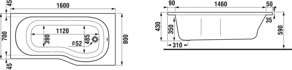- délka 1600 mm, šířka 800 mm, výška 430 mm