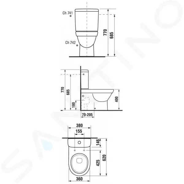 Díky úspornější armatuře Dual Flush si můžete zvolit splachování se 4,5 nebo 3 litry vody. Nádrž se spodním připojením vody (ch. 742) je kompatibilní s kombi mísou (ch.231) a objednává se vždy zvlášť.