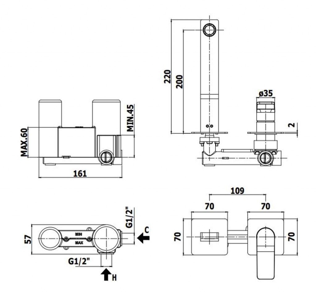 Instalace na montážní podomítkové těleso, které je součástí baterie.